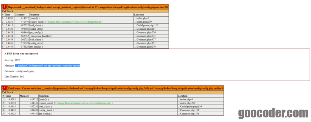 Deprecated: __autoload() is deprecated, use spl_autoload_register()